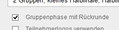 - Titel in Finalspielen unterdrücken: Finalspiele haben normalerweise Titel wie Halbfinale 1 oder Spiel um Platz 3. Diese Titel werden in einer extra Zeile über dem jeweiligen Spiel dargestellt. Wenn du das nicht möchtest, so lassen sich diese Extrazeilen mit dierser Option ausblenden.