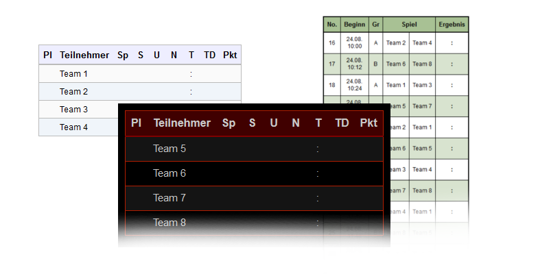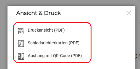 - PDF für den Druck erstellenMöglichkeiten gedruckte Überisichten und Aushänge für dein Turnier zu erstellen.