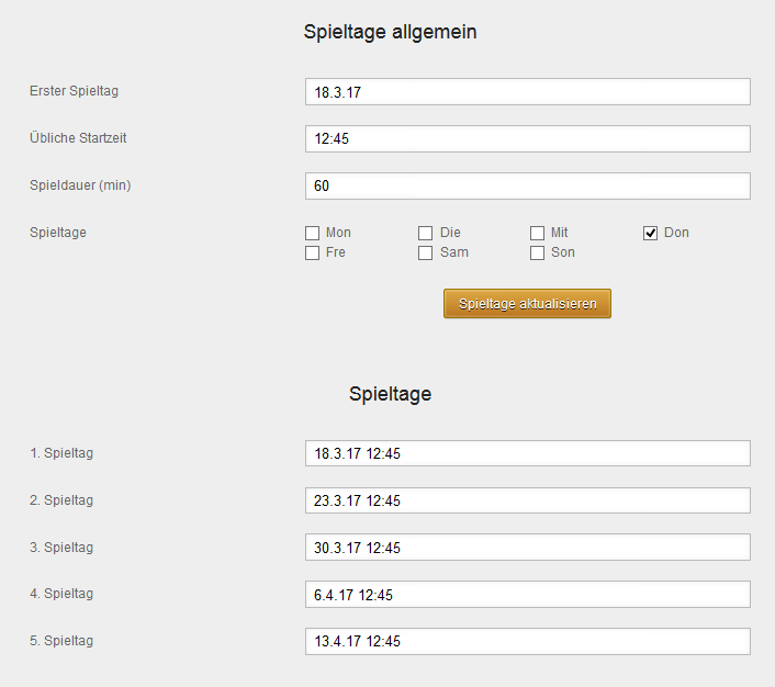 - Datum und Zeit von Spielen einstellenDie verschiedenen Möglichkeiten, bequem die Zeiten für die Spiele zu berechnen